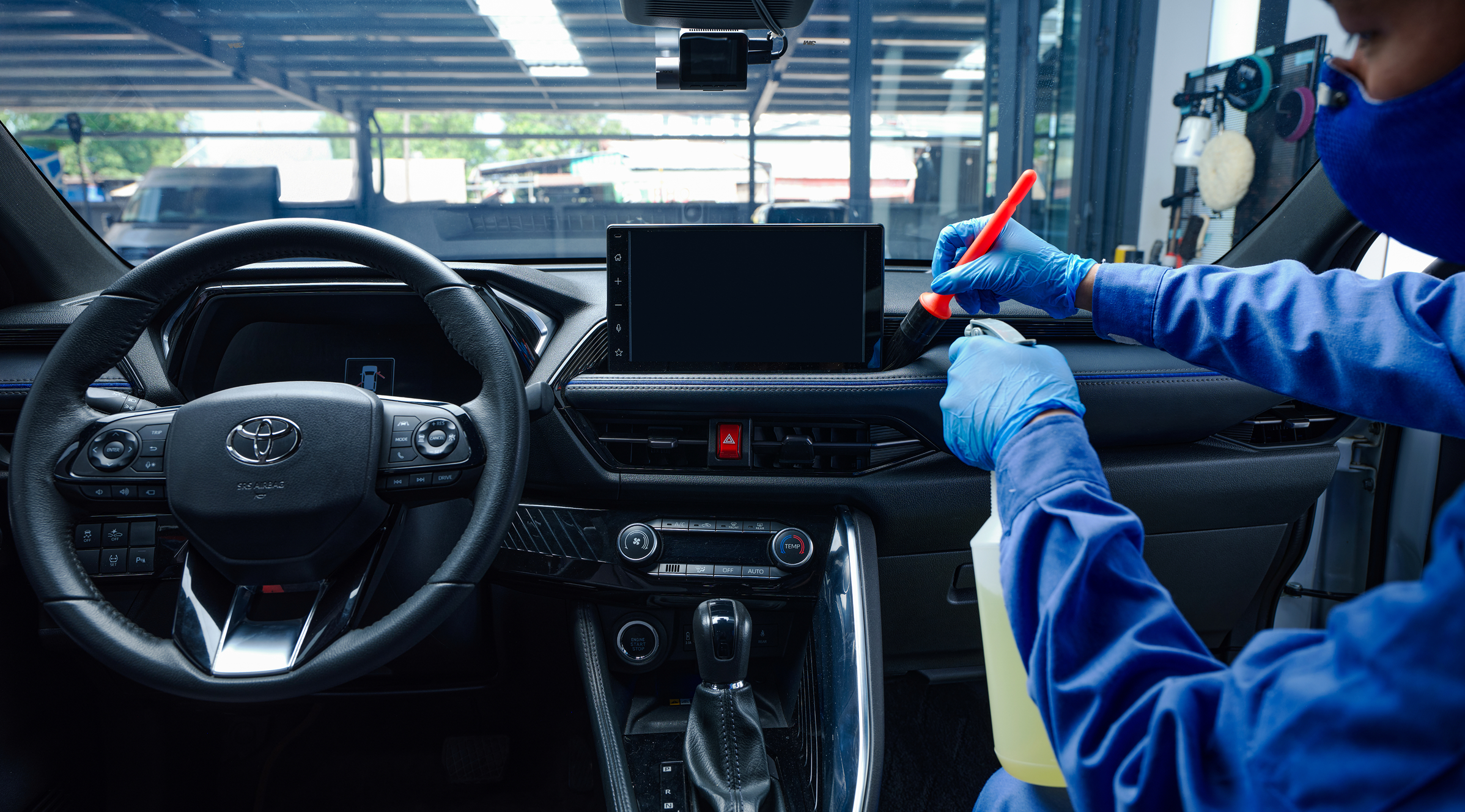 Dịch vụ Vệ sinh nội thất chi tiết TOYOTA TOUCH được thực hiện theo quy trình tiêu chuẩn, giúp làm sạch bụi bẩn và tạp chất tích tụ trong khoang xe, duy trì không gian sử dụng sạch sẽ và thông thoáng.