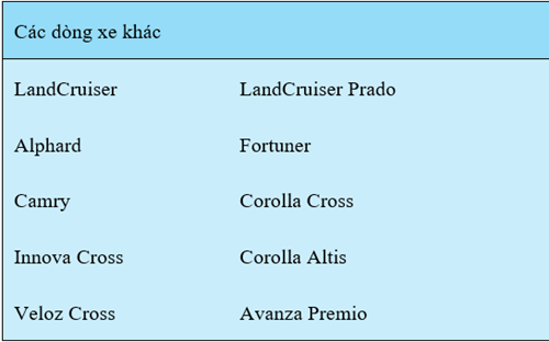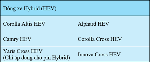 - Phạm vi gia hạn bảo hành: đầy đủ các hạng mục quan trọng như động cơ, hộp số, truyền động, nhiên liệu, phanh, điều hòa, làm mát, điện, thước lái, hệ thống treo…*, bao gồm pin xe Hybrid (đối với dòng xe Hybrid).
